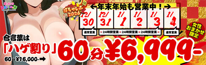 【12/26~1/12】年末年始スペシャル企画! ぽちゃレボのハゲ割!(18時19分更新)|ぽっちゃりレボリューション(鶯谷発・近郊/ぽっちゃりデリヘル)