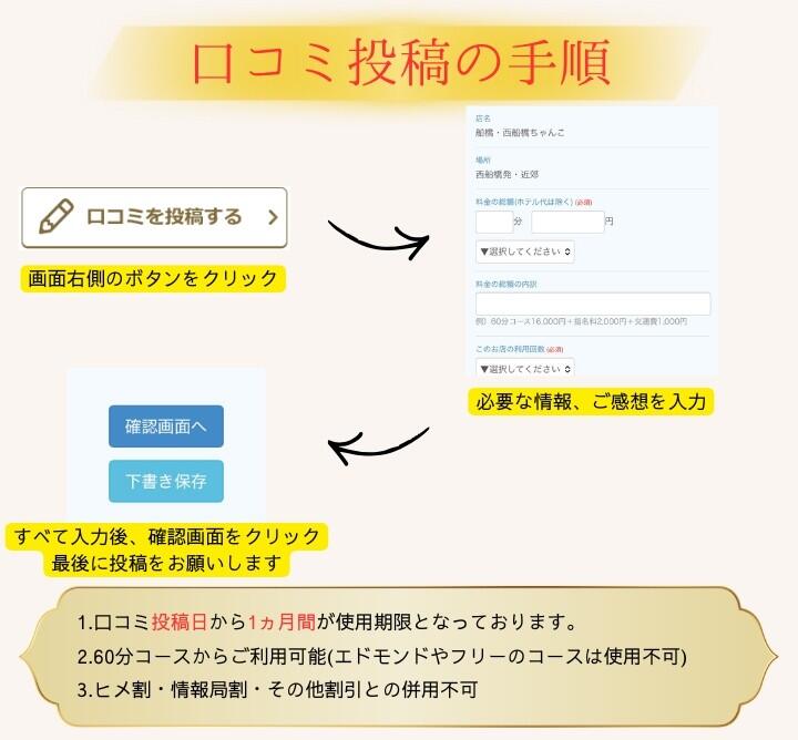 口コミ割引!(03/08更新)|船橋・西船橋ちゃんこ(西船橋発・近郊/ぽっちゃり専門デリヘル)ご利用の際は必ず『情報局みた』とお伝えください船橋・西船橋ちゃんこ047-114-2879営業時間 12:00~24:00スマホで見るこの割引について報告 『情報局みた』で業界最安55分5,000円2026/03/24 22:00 まで50分5000円!スーパーエドモンド♪リニューアルオープン♪もっと見る23:30 まで80分 11,000円しおん(28)T161 95(D)-86-10323:30 まで80分 11,000円なお(20)T150 102(D)-73-9723:30 まで80分 11,000円ゆめ(27)T168 114(H)-93-113もっと見る待機中(21:57の時点)こゆき(28)T153 112(G)-79-102待機中(21:52の時点)もも(24)T151 96(E)-85-99待機中(21:47の時点)はるか(26)T170 112(I)-83-124もっと見る02/28 入店!うるは(22)T165 115(F)-89-11102/16 入店!りるる(29)T166 ?(C)-?-?01/17 入店!あやは(26)T155 97(G)-80-90お店のホームページ