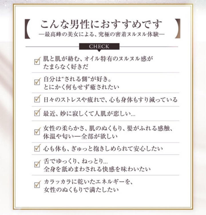 デリヘルでは味わえない極上のリラックス体験をお楽しみにいただけます