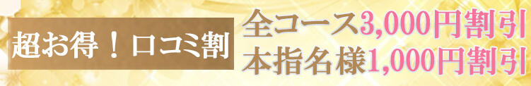 ②口コミ、またはイイ娘を書いていただきましたら当店までご連絡をお願い致します。お遊び日、お遊び場所(地域)お遊びの女の子をお伝えください。確認が取れましたら次回割引となります。