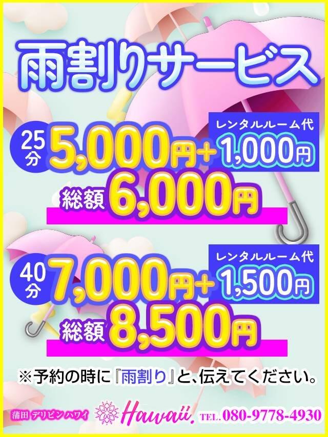 雨割りサービス!(12/24更新)|デリピン ハワイ(蒲田発・周辺/デリヘル)