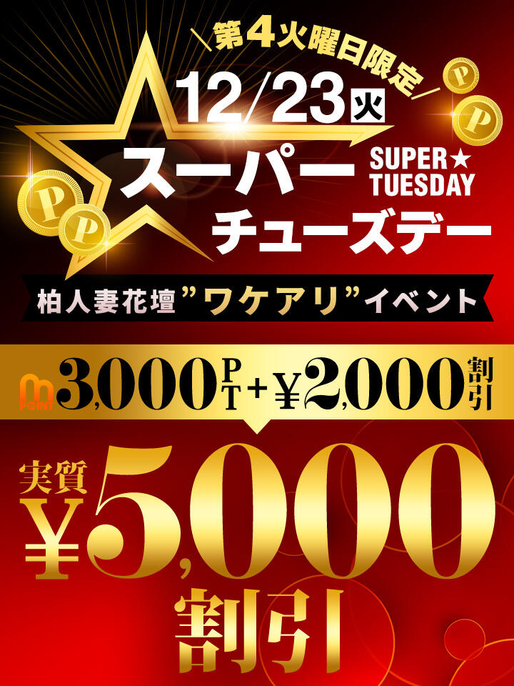 12/23(火)実質5,000円OFF!スーパーサーズデー(01時15分更新)|柏人妻花壇(柏発・近郊/人妻デリヘル)