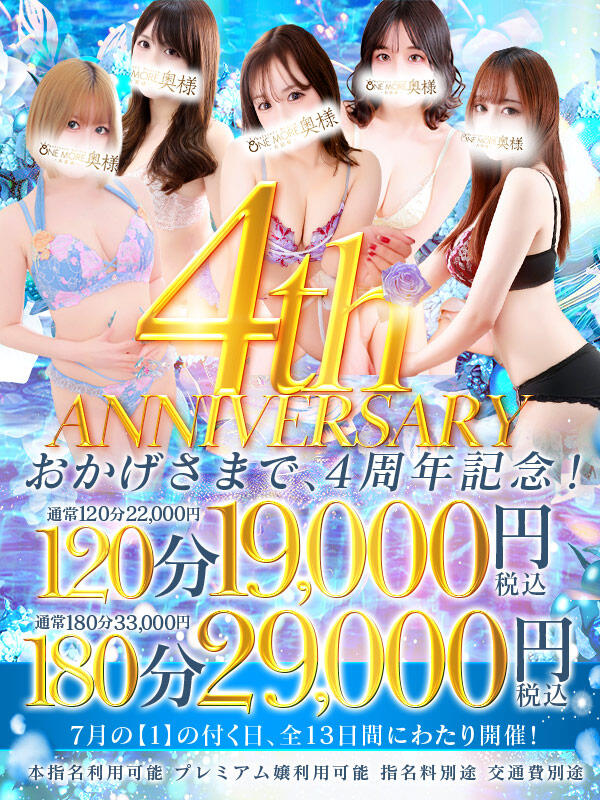 OneMore奥様 大宮店 4周年anniversary(2025/06/30更新)|One More奥様 大宮店(大宮発・近郊/人妻デリヘル)