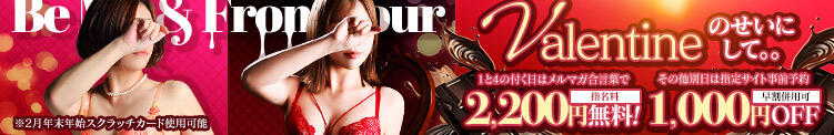 ― バレンタインのせいにして。1と4の付く日は超お得!指名料無料★さらに事前予約も割引!(01/31更新)|人妻倶楽部 内緒の関係 大宮店(大宮発・近郊/人妻系デリヘル)