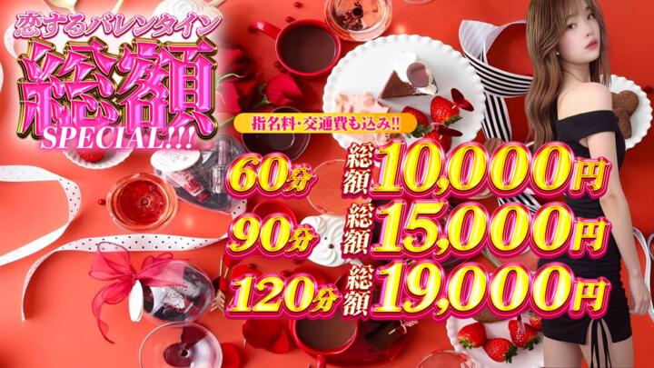 『恋するバレンタイン総額SPECIAL!』(02/12更新)|奥様特急 上野・鶯谷店(鶯谷発・都内23区全域出張/駅待ち合わせ型人妻デリヘル)