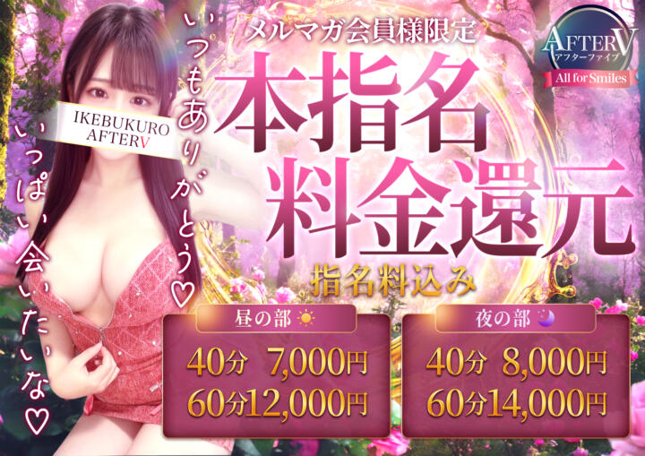 毎月恒例!料金還元イベント!(11/21更新)|AFTER V(アフターファイブ)(池袋/セクキャバ)