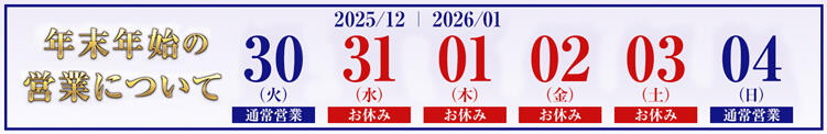 誠に勝手ながら、下記期間を年末年始休暇とさせていただきます。