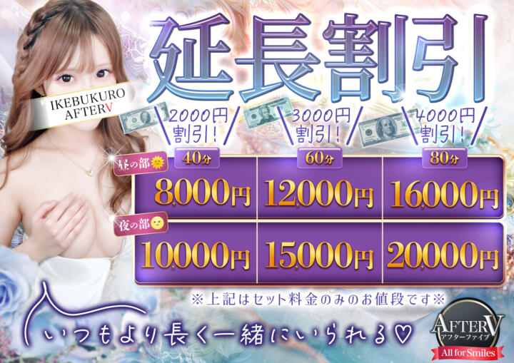 延長割引イベント開催!!(12/15更新)|AFTER V(アフターファイブ)(池袋/セクキャバ)