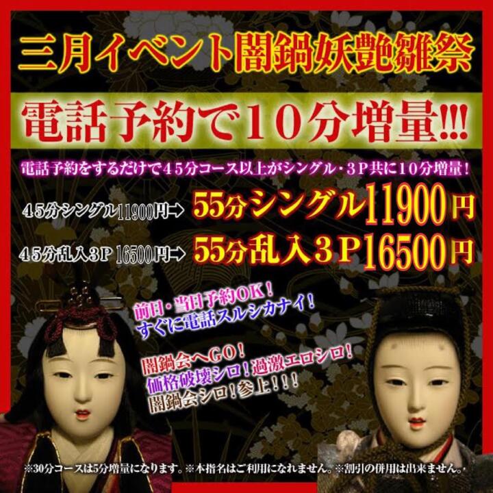 2026【三月イベント闇鍋妖艶雛祭】電話予約で10分増量!!!(03/01更新)|絶対服従闇鍋会 新大久保店(新大久保/拘束M性感デリヘル)