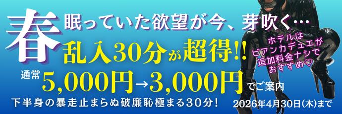 通常30分5,000円の乱入が、今なら3,000円で体験できるチャンス!あんなこと、こんなこと、秘めた欲望を思い切り叶えてもらっちゃってください☆