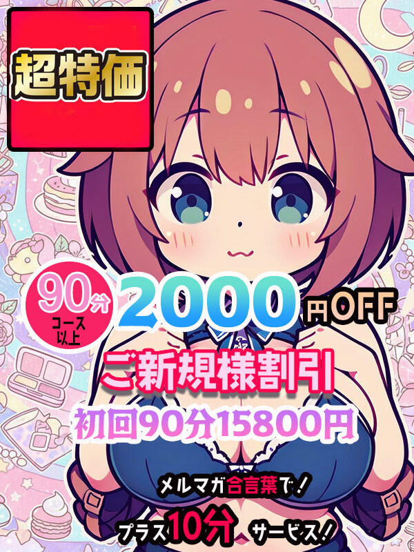 【ご新規様3,000円割引】 90分14,800円!総額9,000円お得!(01/11更新)|ちょい!ぽちゃロリ倶楽部Hip's馬橋店(馬橋発・近隣駅/ぽっちゃり系デリヘル)