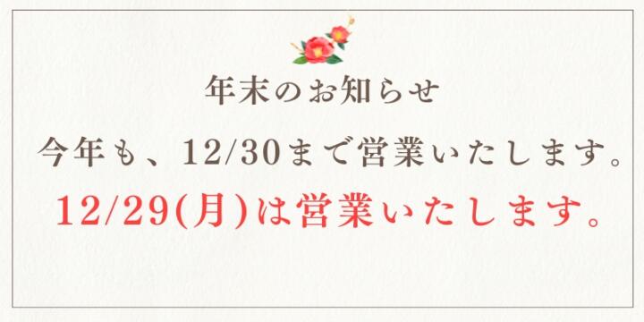 年内最終営業日までセラピスト・スタッフ一同、皆様のご来店を心よりお待ちしております。