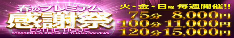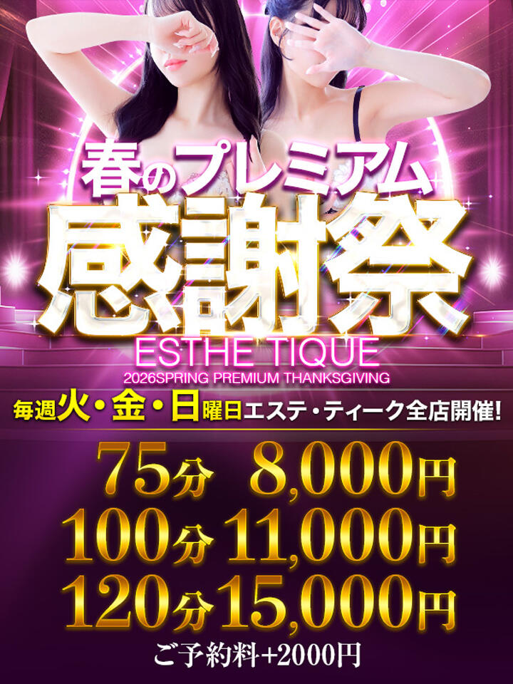 ◆超破格◆【75分8000円】春のプレミアム感謝祭★開催!(04/01更新)|大阪回春性感エステティーク谷九店(谷九発・近郊/派遣型エステ)