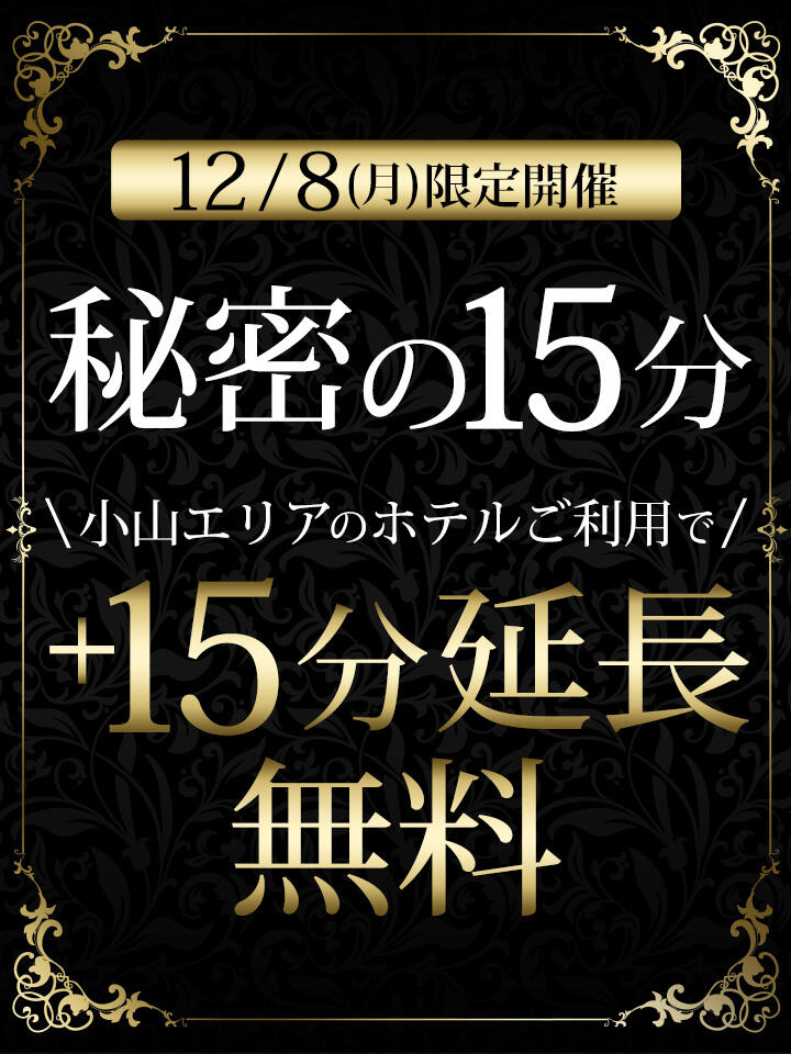 12/8(月)開催! 秘密の15分(07時30分更新)|モアグループ小山人妻花壇(小山発・近郊/人妻系デリヘル)