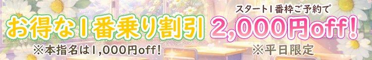 30分コース以上「2,000円割引」本指名は「1,000円割引」にてご案内(*^_^*)※平日限定 他の割引適用不可