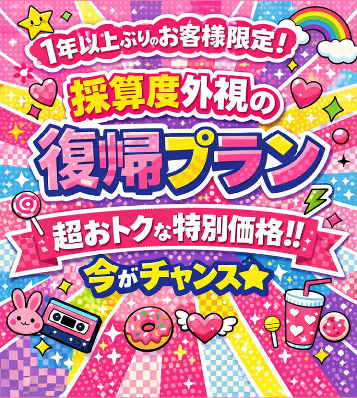 💰 1年以上ぶりのお客様限定!採算度外視の復帰プラン 💰