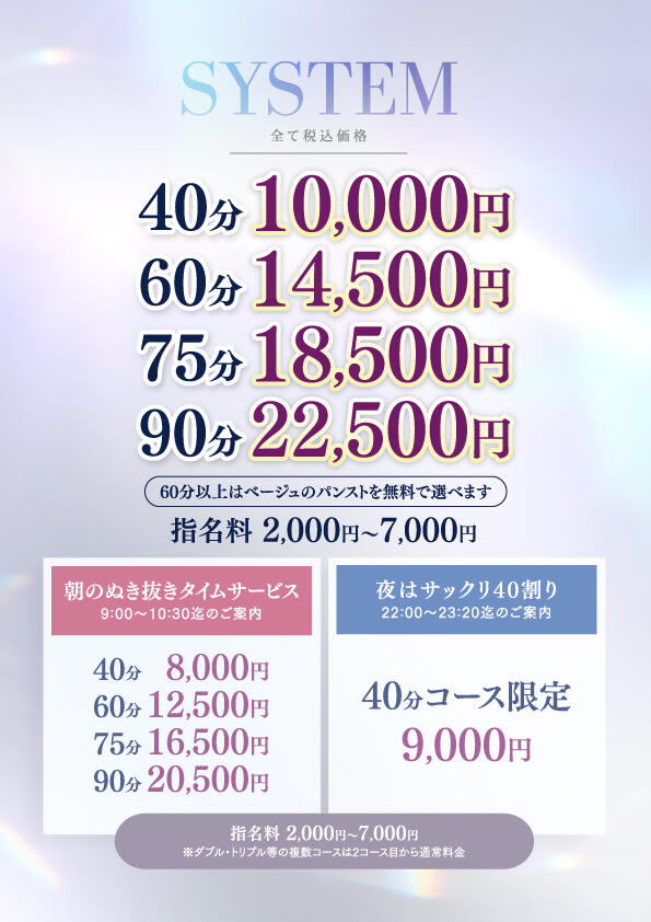 ※ダブル等は2コース目から通常料金!!