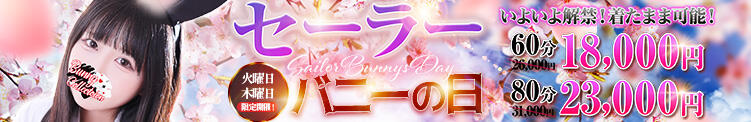 ☆セーラーバニーの日☆60分18,000円(12時17分更新)|バニーコレクション千葉栄町店(千葉栄町/ソープランド)