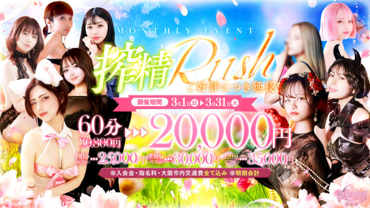 甘く咲きほどける、欲望解放月間。【搾精Rush】(03/01更新)|搾精研究所(梅田発・近郊/痴女・M性感)