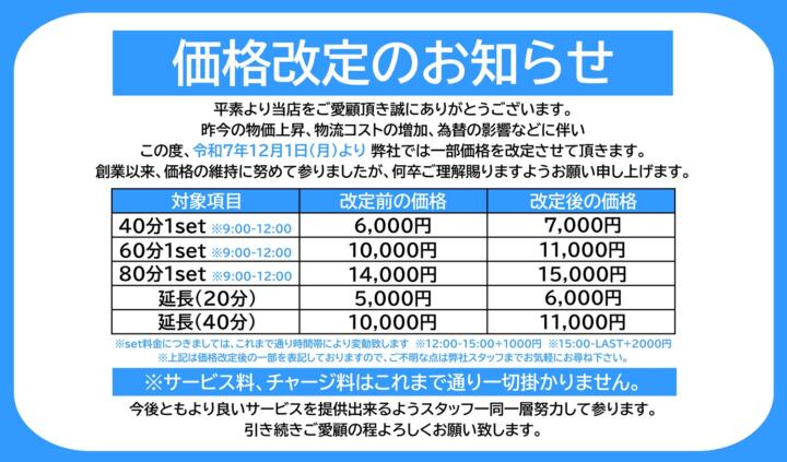 価格改定のお知らせ(09/07更新)|CHERRY DAYS WEST(チェリーデイズウエスト)(池袋/セクキャバ)