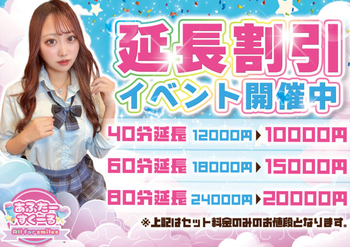 延長割引イベントを開催します!(15時58分更新)|あふたーすくーる(池袋/セクキャバ)