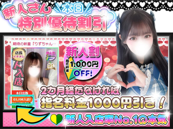 内容:初めて遊ぶ新人の女の子限定で指名料金【1000円引き】!!!