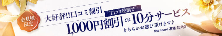 口コミは最高のラブレター♪口コミ割引が新しくなりました!!(12/14更新)|One More 奥様 松戸店(松戸発・近郊/人妻系デリヘル)