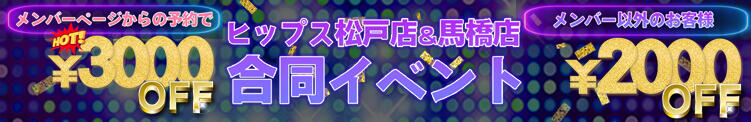 合同イベント開催!MAX3000円割引!(12/18更新)|素人妻御奉仕倶楽部Hip's松戸店(松戸発・周辺駅/デリヘル)
