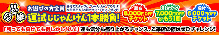 運試しと腕試しに、ぜひスタッフとのじゃんけん勝負に挑んでみませんか?