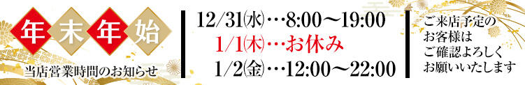 【年末年始営業時間のお知らせ】