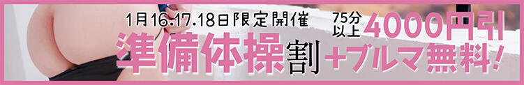 【4.000円割引】1/16-18日◆準備体操割◆事前予約&1番手・最終枠予約限定!(01/15更新)|しこたまッ!~コスプレ×恋愛~(船橋/ホテヘル)