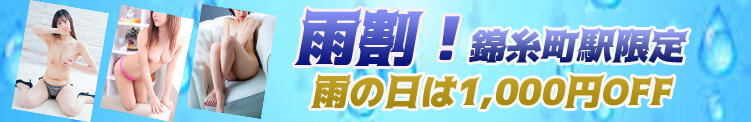 雨割!!錦糸町駅限定90分以上で1000円OFF♪♪(01/16更新)|美妻隊(錦糸町発・近郊/派遣&待ち合わせ型ヘルス)雨割!! 錦糸町駅限定 90分コース以上1,000円OFFご利用の際は必ず『情報局みた』とお伝えください美妻隊0120-67-1415営業時間 12:00〜翌2:00スマホで見るこの割引について報告 『情報局みた』で90分15,500円2026/02/26 23:50 までもっと見る3人のユーザーが良かったと口コミ夢精してしまうSSS級若美妻愛(31)T160 85(D)-58-873人のユーザーが良かったと口コミ200%完全未経験!!激カワ若美妻ゆら(24)T164 88(D)-58-892人のユーザーが良かったと口コミ欲求不満の爆乳OL美妻かすみ(39)T150 102(F)-59-86もっと見る12/25 入店!経験超極浅!!H大好き激カワ幼妻美月(21)T150 86(D)-59-8611/11 入店!200%完全未経験!!激カワ若美妻ゆら(24)T164 88(D)-58-89お店のホームページ