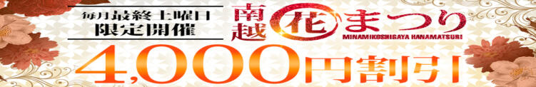 【南越花まつり】月イチの最大4,000円OFFイベント(04/07更新)|モアグループ南越谷人妻花壇(南越谷発・近郊/人妻デリヘル)