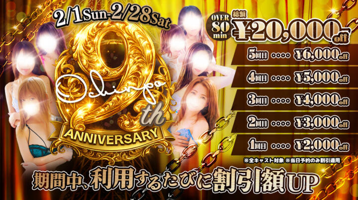 ・ご予約の際に必ず『9周年イベント』とお伝え下さい。