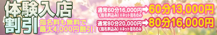 体験入店割引🔰指名料も無料で最大4,000円割引!