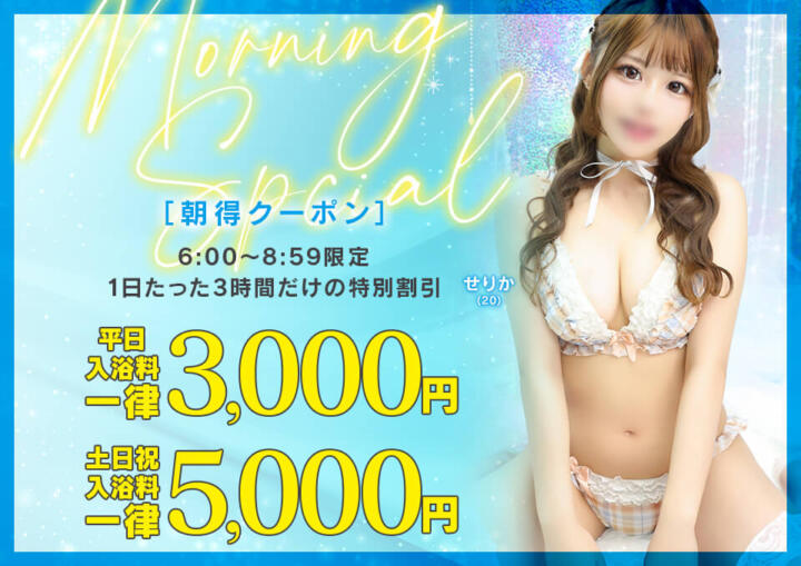 平日6:00~8:59限定で、60分コース以上・全キャスト対象の「朝得クーポン」を実施。