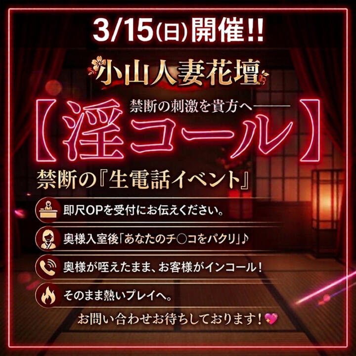 【3/15日(日) 淫コール!(02時42分更新)|モアグループ小山人妻花壇(小山発・近郊/人妻系デリヘル)