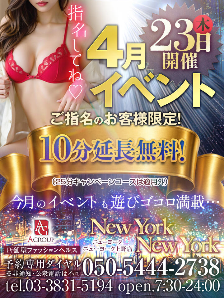 【4月】イベント開催!(04/02更新)|ニューヨークニューヨーク(上野/人妻熟女専門ヘルス)