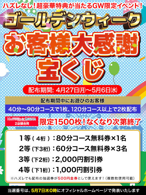 【4/27~5/6開催】ゴールデンウィークお客様大感謝宝くじ(04/28更新)|ドリーム水戸(天王町(水戸市)/ソープランド)