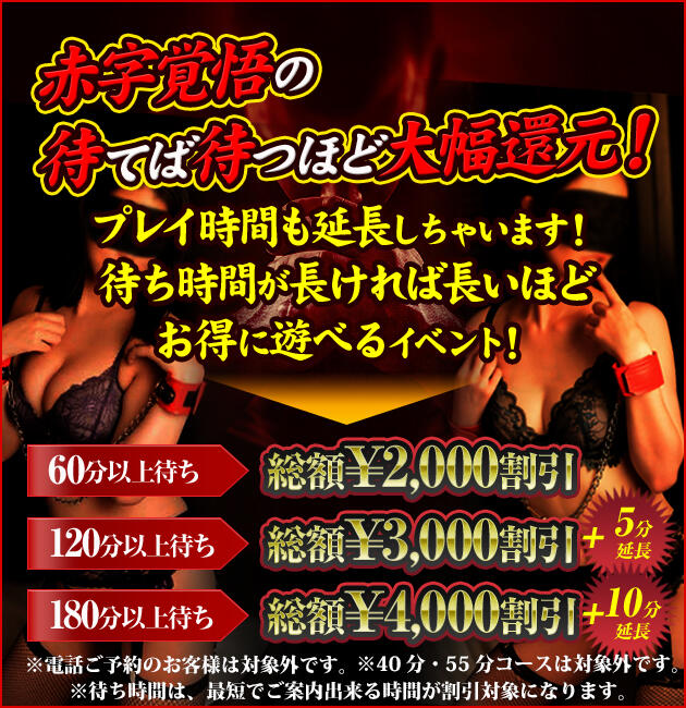 ※待ち時間は、最短でご案内出来る時間が対象となります。(指名不可)