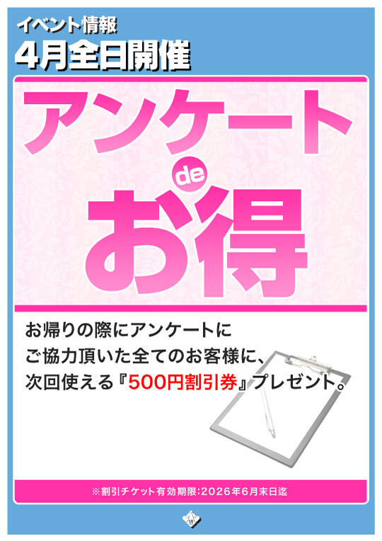 次回使える『500円割引券』プレゼント。