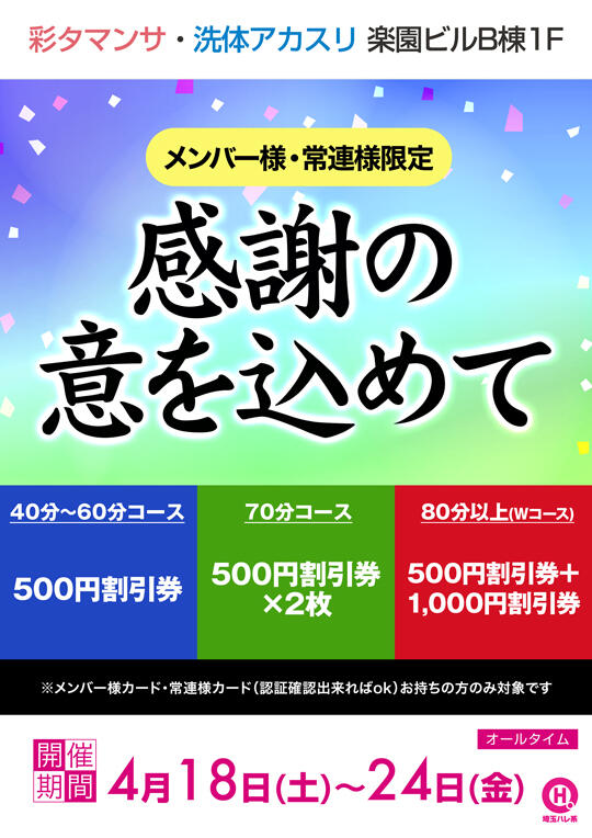 割引(ヒメ割、局割、お店の割引)|彩タマンサ(埼玉ハレ系)