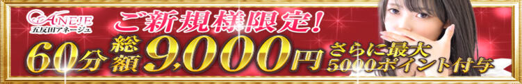 ご新規様限定プラン 60分 総額9000円更に次回使用可能な最大5000ポイント付与(02/27更新)