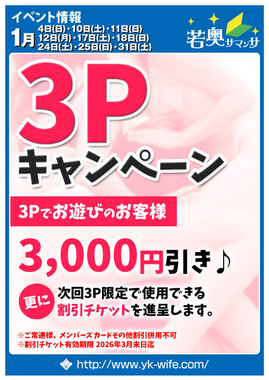 3Pでお遊びのお客様3,000円引き♪