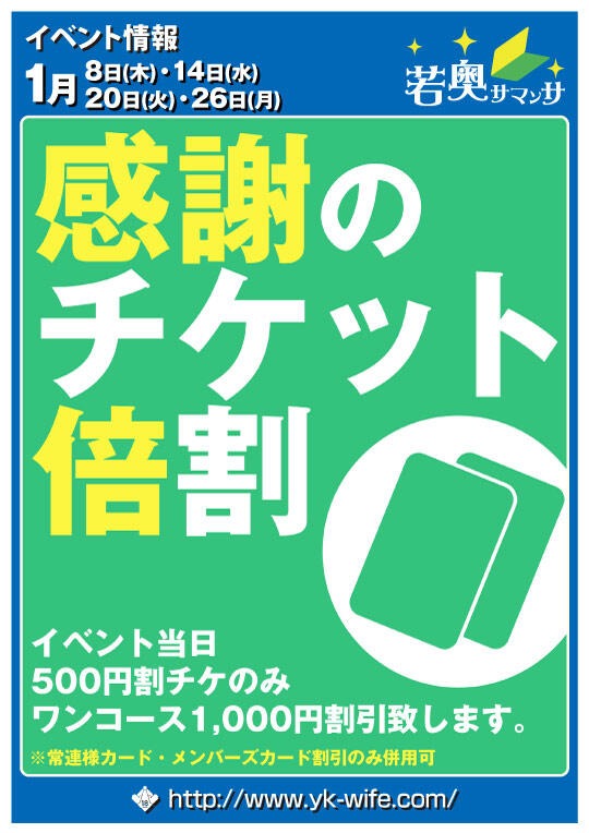 イベント当日500円割チケのみワンコース1,000円割引致します。