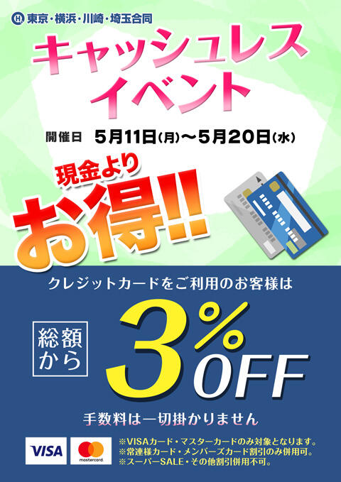 お遊びの際にクレジットカードをご利用のお客様は「総額から3%OFF」致します!