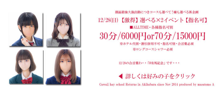 12/28(日)【激得】コースも嬢も選べる×2イベント【指名可】 #有馬記念(21時08分更新)