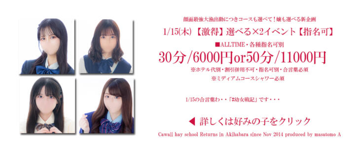 1/15(木)【ミディアム】コースも嬢も選べる×2イベント #幼女戦記(21時47分更新)
