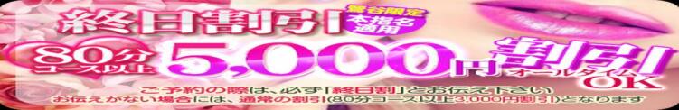 当日午前中のみ!!80分以上のコース¥5000割引き(鶯谷限定・本指名適用)
