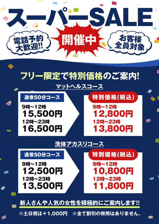 フリー限定で特別価格のご案内!